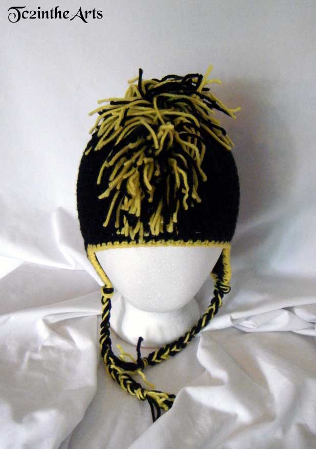 Crochet Mo-Hawk Ear-Flap Hats. I sell these anywhere from $15-$30. If you're interested in buying one, or just have a question, you can reach me at one of these links